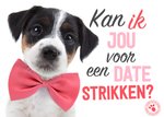 Wie wil jij strikken voor een date? Verstuur hem of haar dit schattige kaartje met een hondje. Hij heeft zijn 'strik' al om. ;-)