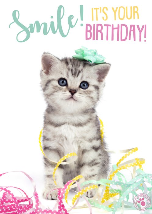 Lieve verjaardagskaart met katje en de tekst: Smile! It's your birthday!
