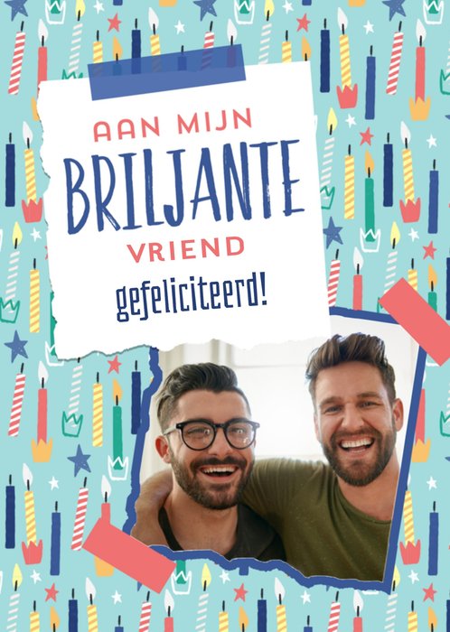 Leuke fotokaart met de tekst: Aan mijn briljante vriend gefeliciteerd!