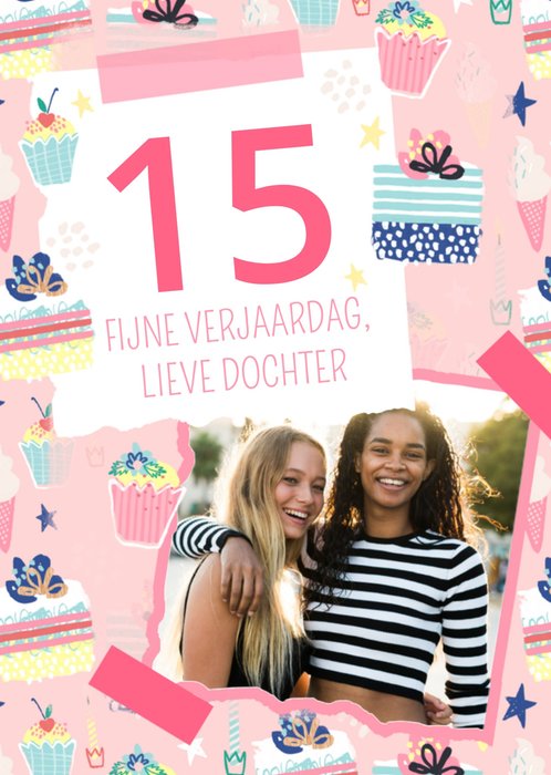 Leuke fotokaart met leeftijd en de tekst: Fijne verjaardag lieve dochter.