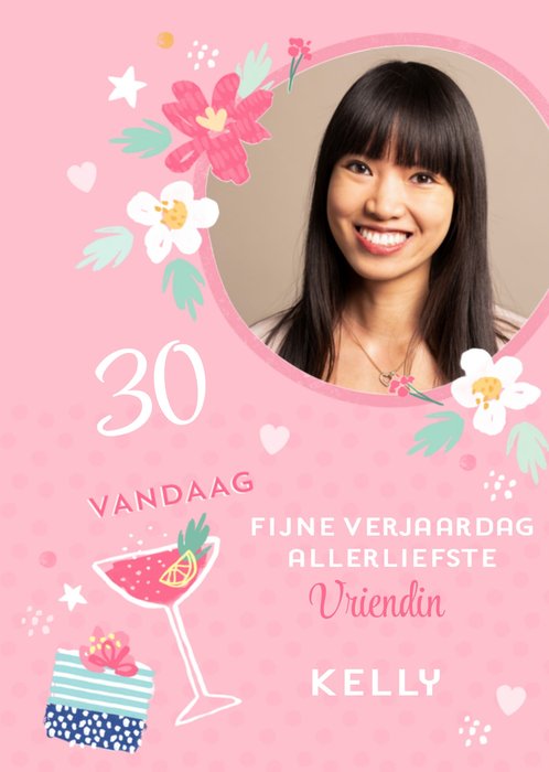 Leuke verjaardagskaart met foto en aanpasbare tekst.