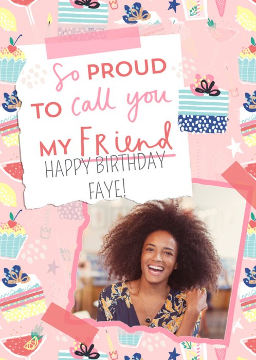 Leuke verjaardagskaart met foto en aanpasbare naam.