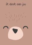 Lieve wenskaart met beertje en de tekst: Ik denk aan jou