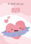 Lieve denken aan kaart met hartje en aanpasbare naam.