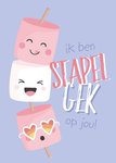 Smakelijke wenskaart met illustratie en de tekst: Ik ben stapel gek op jou!
