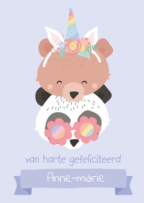 Leuke verjaardagskaart met panda en aanpasbare naam.