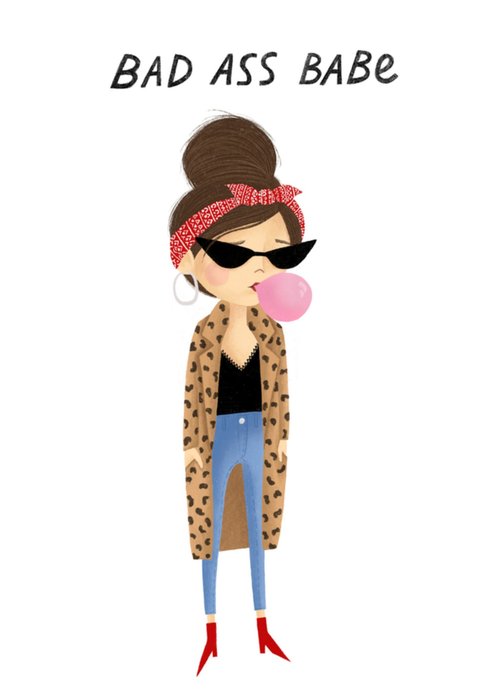 Leuke verjaardagskaart met illustratie en de tekst: bad ass babe