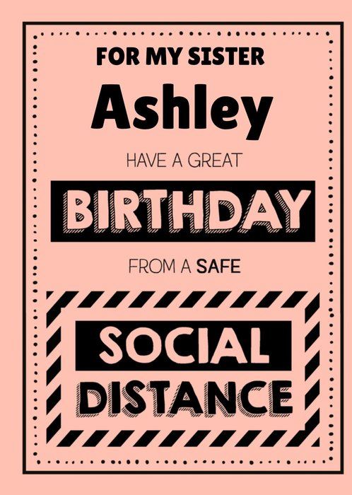 Leuke en vrolijke verjaardagskaart van The dogs doo-dahs. Op deze verjaardagskaart staat de tekst: For my sister [naam] have a great birthday from a safe social distance.