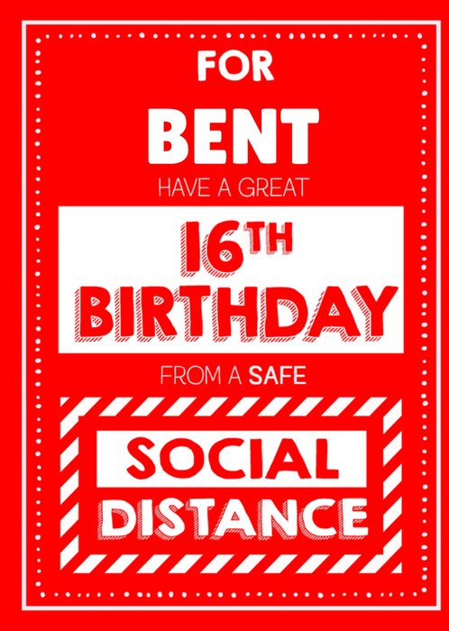 Leuke en vrolijke verjaardagskaart van The dogs doo-dahs. Op deze verjaardagskaart staat de tekst: For [naam] have a great 16th birthday from a safe social distance.