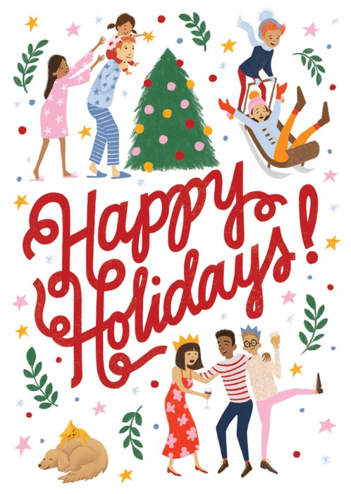 Ho Ho Ho! Het is weer de leukste tijd van het jaar! Stuur een leuke kerstkaart als verrassing. Op deze kerstkaart staat: Happy holidays.