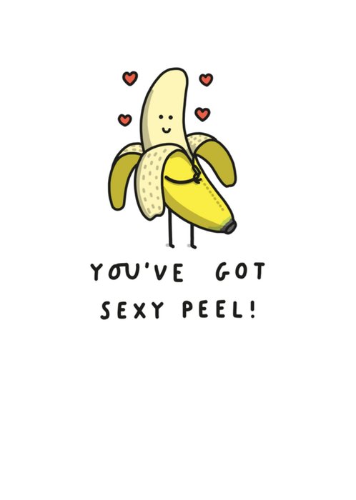 Grappige valentijnskaart met illustratie van een banaan en de tekst: You've got sexy peel!