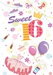 Hiep hoera! Jij kent iemand die binnenkort jarig is. Stuur daarom deze leuke en vrolijke verjaardagskaart van TMS. Op de kaart staat: Sweet 16.