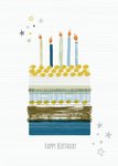 Hiep hoera! Jij kent iemand die binnenkort jarig is. Stuur daarom deze leuke en vrolijke verjaardagskaart van TMS. Op de kaart staat een taart en de tekst: Happy birthday.