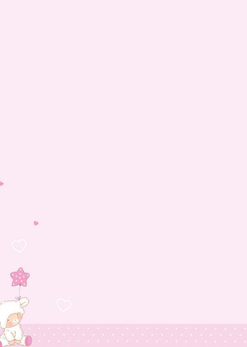 'It's a girl!'. Deze snoezige, roze kaart bestaat uit een pasgeboren lammetje met daar omheen kleinere exemplaren van het lammetje.