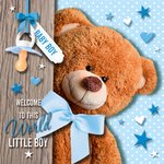 Dit leuke geboortekaartje valt altijd goed in de smaak. Je ziet op het geboortekaartje een schattige teddybeer en allemaal blauwe sterretjes.