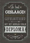 Geslaagdkaart van TMS voor het behalen van een diploma en met de tekst: Je bent geslaagd gefeliciteerd met het behalen van je dimploma.