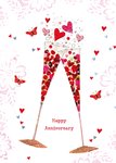 Mooie kaart om een echtpaar te feliciteren met hun jubileum met op de kaart twee champagne glazen vol met vlinders en hartjes.