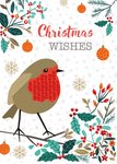 Een leuke kerstkaart van TMS met een roodborstje en de tekst: Christmas wishes.