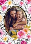 Verras mama met deze lieve kaart. Op de voorkant voeg je jouw eigen foto toe en daaromheen staan vrolijke bloemetjes en stippen.