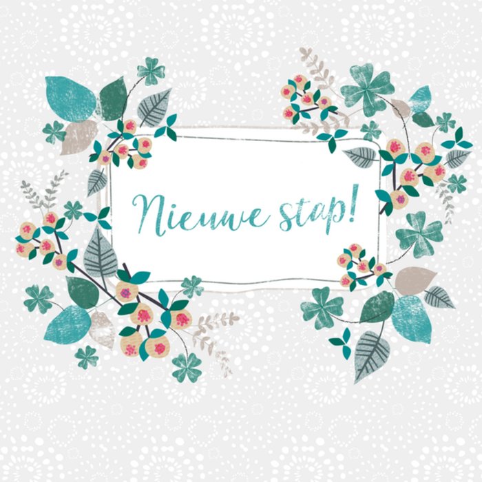 Leuke wenskaart met bloemen en de tekst: Nieuwe stap!