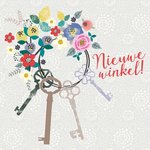 Leuke wenskaart met illustratie en de tekst: Nieuwe winkel!