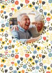 Leuke paaskaart met bloemen en aanpasbare foto.