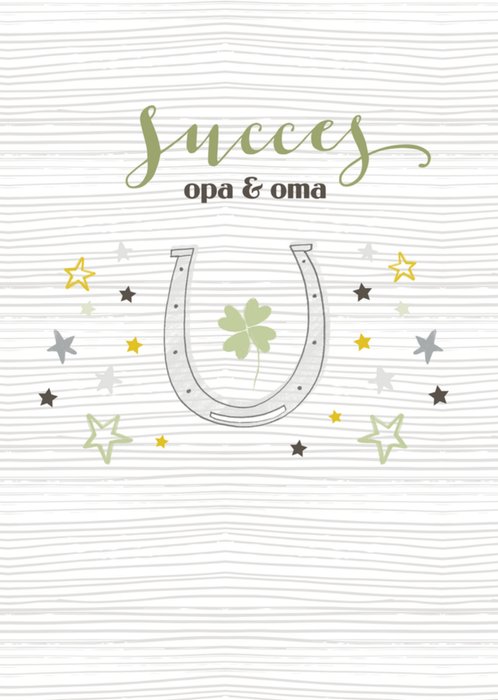 Leuke succeskaart met illustratie van een hoefijzer en de tekst: Succes opa & Oma.