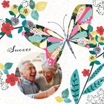Vrolijke succeskaart met illustratie en aanpasbare foto.