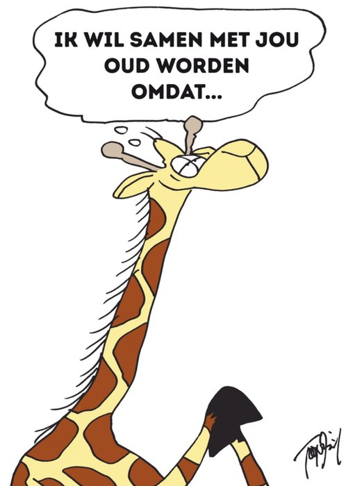Grappige valentijnskaart met illustratie van een giraffe.