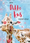 Lieve valentijnskaart met twee giraffen en de tekst: Een dikke kus voor jou!