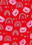 Leuke valentijnskaart van TMS. Op de kaart staan enveloppen en regenbogen.