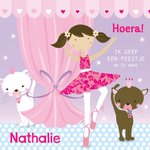 Kinderfeestje uitnodiging met een ballerina. De poesjes dansen met haar mee.