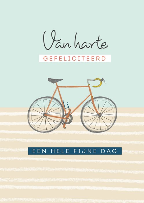 Verjaardagskaart om iemand mee te feliciteren met op de kaart een fiets en de tekst: Happy birthday. Have a great day.