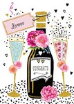 Feliciteer iemand met deze spetterende kaart met champagne en vrolijk gevulde glazen.