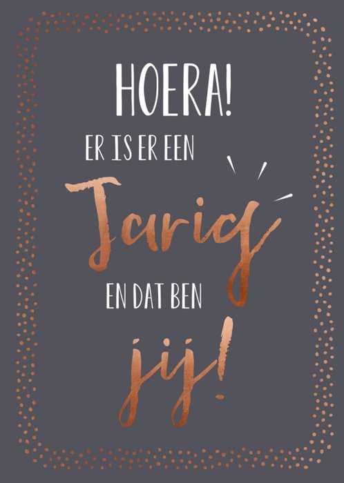 Feliciteer de jarige met deze verjaardagskaart met de tekst: "Hoera, er is er een jarig en dat ben jij!"