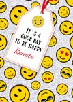 Een leuke kaart waarop de tekst "It's a good day to be happy". Op deze kaart kan je zelf de naam van de ontvanger toevoegen.