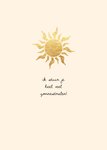 Met deze kaart kan je aan iemand laten weten dat je aan diegene denkt. Op de kaart is een illustratie van een zon te zien. Onder de zon staat de tekst "ik stuur je heel veel zonnestralen".