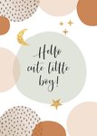 Een kleintje geboren? Feliciteer de kersverse ouders met dit schattige kaartje. Op de kaart staat de tekst "Hello cute little boy!".