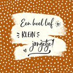 Een kleintje geboren? Feliciteer de kersverse ouders met dit schattige kaartje. Midden op de kaart staat de tekst "een heel lief klein jongetje".