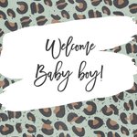 Feliciteer de kersverse ouders met de komst van hun kleine man met deze hippe geboortekaart met tijgerprint en de tekst: "Welcome baby boy!"
