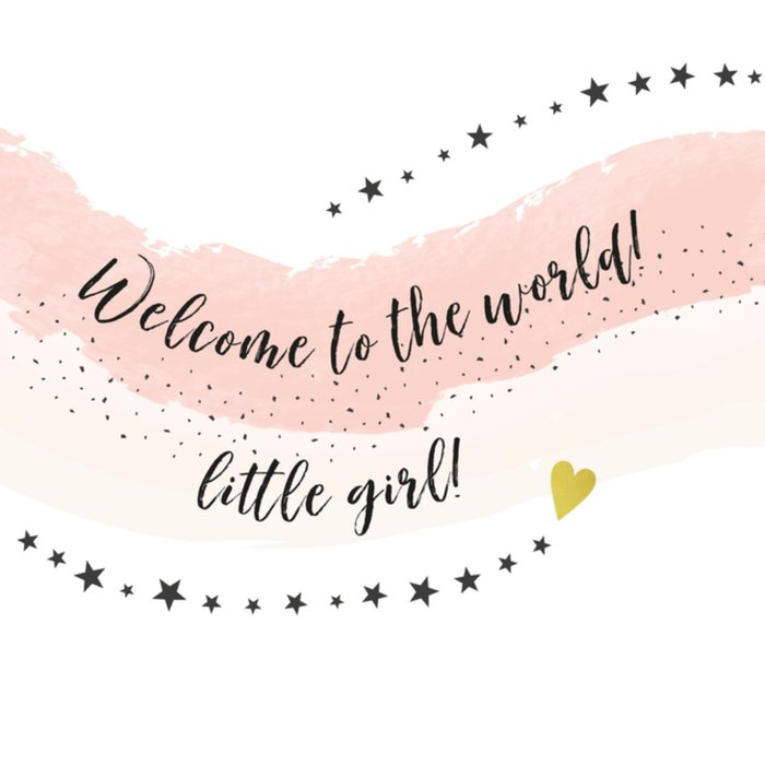 Verwelkom de kleine meid op deze wereld met dit lieve geboortekaartje met zalm-roze tinten. Op de kaart staat de tekst: "Welcome to the world! Little girl!