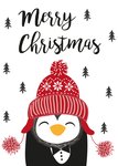 Een schattige kerstkaart van Cute as a botton waarop een vogeltje warm is gekleed met een rode muts.