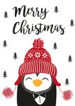 Een schattige kerstkaart van Cute as a botton waarop een vogeltje warm is gekleed met een rode muts.
