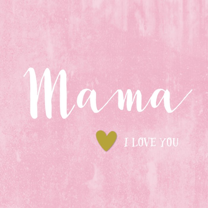 Verstuur deze leuke roze kaart met een goud hartje naar je lieve moeder. Op de kaart staat ´Mama I love you´