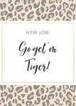 Een nieuwe baan is spannend, maar moet ook gevierd worden. Feliciteer met deze toffe kaart met tijgerprint en de tekst: "Go get 'm tiger!"
