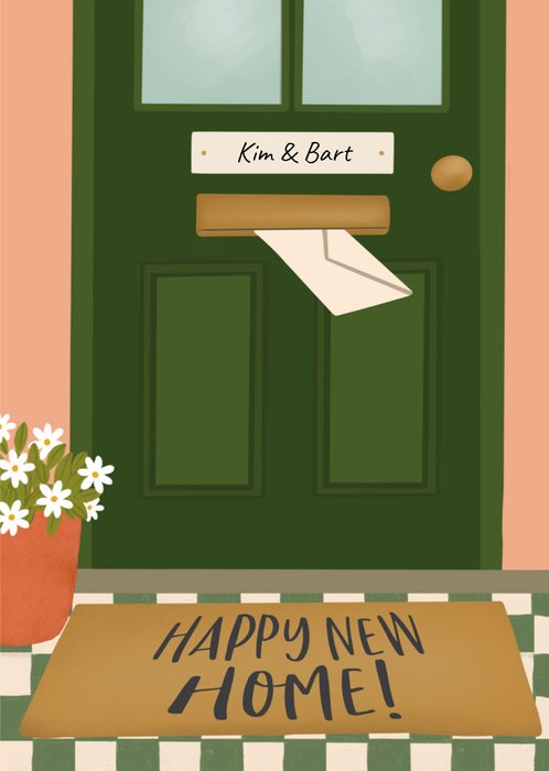 Verras iemand met deze vrolijke Nieuwe woning kaart. De naam is aanpasbaar.