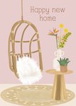 Leuke nieuwe woning kaart met illustratie en de tekst: Happy New Home