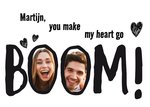 Typografische valentijnskaart met aanpasbare fotos en de tekst: 'You make my heart go boom!'. Verras je liefde met deze leuke valentijnskaart van Tsjip.