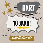 Tijd om een kaartje te sturen want jij kent iemand die binnenkort jarig is! Stuur deze leuke kaart van Tsjip als verrassing. Op de verjaardagskaart staat: [Naam] 10 jaar! Gefeliciteerd.