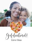 Wens oma een fijne verjaardag met deze fleurige verjaardagskaart van Tsjip! Op de kaart staat: Gefeliciteerd lieve oma. Je kunt ook een foto toevoegen.